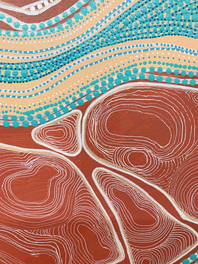 The gallery has on display this beautiful new work by Dunghutti artist Rachel Cross. Rachel says of her work: This painting was inspired by my daughter Piper (11). I mentioned to Piper that I was looking for inspiration for my next painting. Piper on her walk home from school began to bring things that she…